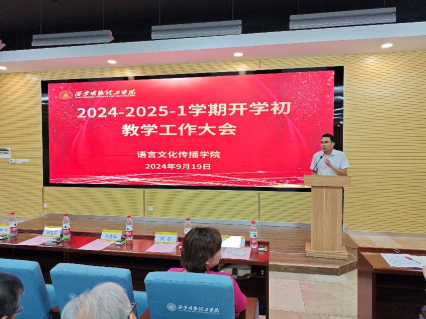 为切实做好教学评建工作,推进本学期教学有序开展,学习领会校长王志刚、校党委书记马川鑫在新学期工作部署会上的讲话精神,9月19日下午,语言文化传播学院在建德楼201报告厅召开2024-2025-1学期开学初教学工作大会。学院全体教职工参加,学院党委书记赵旭东主持。