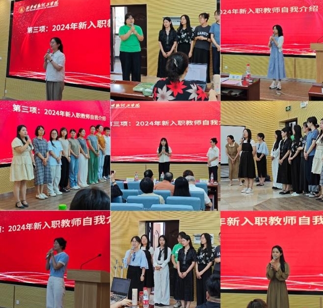 2024年新入职教师上台进行自我介绍,并表示将认真做好教学、站稳讲台。