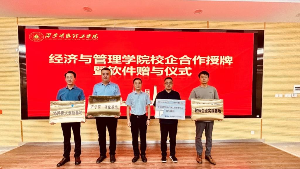 签约仪式上,何文举代表学院为四家“校外实习实训基地”企业授牌,与重庆知翰合众科技有限公司、西安京天网络科技有限公司及陕西国奥蓝海信息科技有限公司分别签署了企业运营虚拟仿真实训软件、纳税实务综合实训软件和财会商圈虚拟仿真实训软件的赠与协议。校企双方均表示,将深化合作,发挥好实习实训基地的作用,开展全方位、深层次、宽领域的合作项目,赋能应用型人才培养和师资队伍建设。