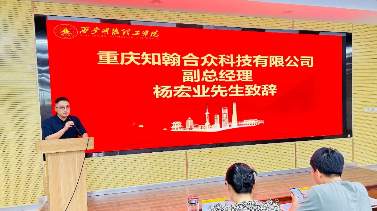 交流环节,厦门网中网软件有限公司区域总经理鲁盛峰和重庆知翰合众科技有限公司副总经理杨宏业分别代表企业方致辞。他们高度赞扬了学院在人才培养方面取得的显著成效,表示将继续深化与学院的合作,共同探索校企合作的新模式、新路径,为社会培养更多高素质应用型人才。