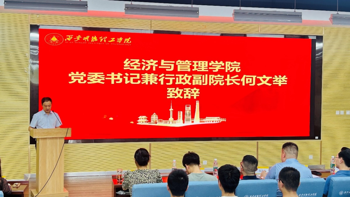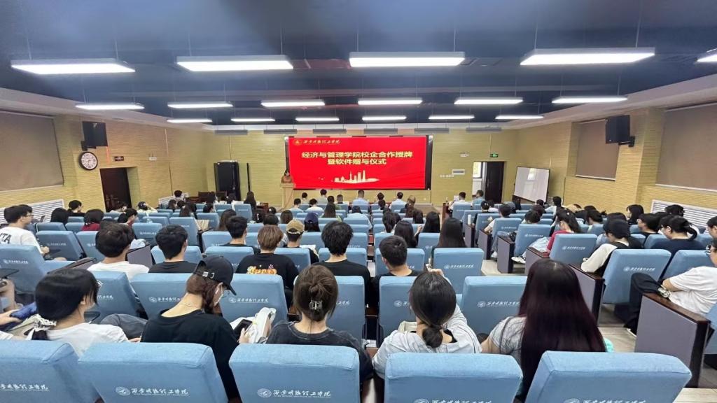 为深化产教融合,推进专业建设与人才培养模式创新,提高应用型人才培养质量。9月19日下午,经济与管理学院在建德楼202举办校企合作授牌暨软件赠与仪式。学院党委书记兼行政副院长何文举、副院长许萍、会计学专业负责人张荣斌、李玥,厦门网中网软件有限公司区域总经理鲁盛峰,重庆知翰合众科技有限公司副总经理杨宏业、大区总监汪夔,西安京天网络科技有限公司总经理杨祥威、商务经理王佳丽,陕西国奥蓝海信息科技有限公司副总经理张鹏飞及学院师生代表120余人参加了活动。活动由会计学专业教师吕若欣主持。