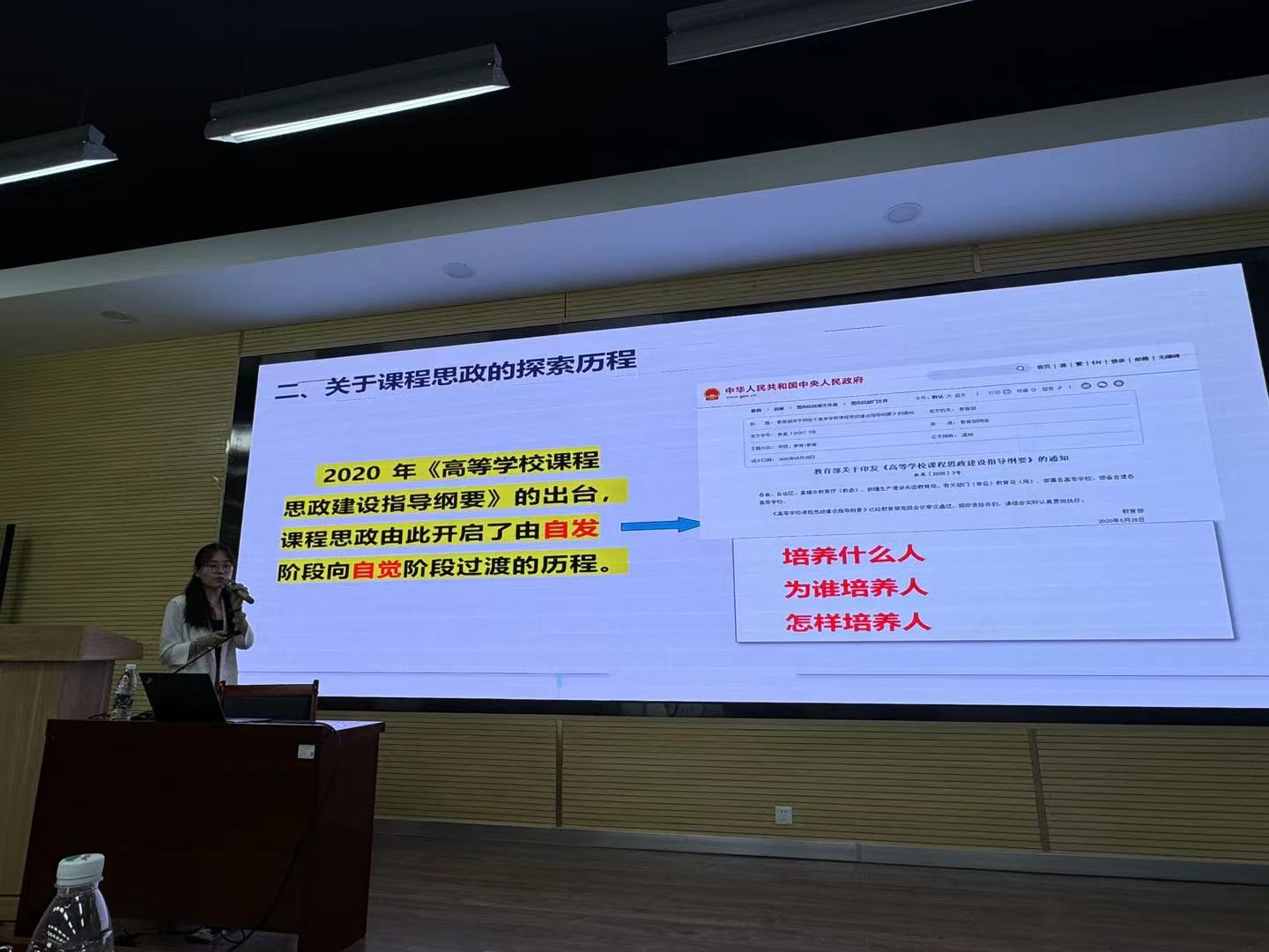 随后,七个专业的教师代表结合外出学习的主题,依次从培训内容介绍、培训收获及个人努力方向等三个部分进行了交流分享,着重就教育教学改革、课程思政建设、信息技术运用、以学生为中心育人理念、科研项目申报等内容进行分享。七位老师准备充分,内容详实,赢得了在场教师的阵阵掌声。