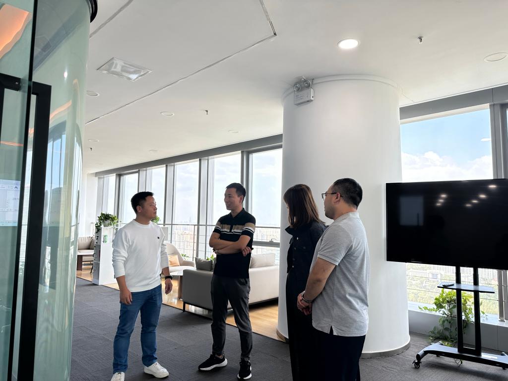 西安核音智言科技有限公司对外合作部项目经理宋永林、市场经理卢佳梅带领学院一行首先参观了公司的研发部门和办公环境,随后,双方在会议室进行了深入的座谈交流。双方就如何更有效地开展实习实训项目、如何确保学生的毕业设计与企业实际需求紧密结合、如何共同组织并提升学科竞赛的参与度和影响力,以及如何通过教师培养提升学院的教学质量和科研水平等议题进行了富有成效的讨论。
