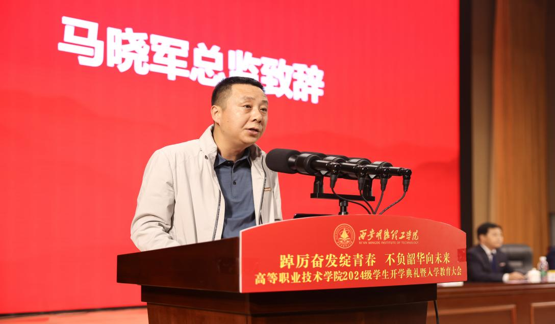 在庄严而又振奋人心的国歌声中,拉开了大会的帷幕。会上,马晓军总监在致辞中代表学校向各位新同学表示热烈的欢迎;向辛勤培养学生成长成才的父母和师长表示衷心的感谢;并对同学们提出殷切希望:希望同学们在充满机遇与挑战的新阶段能够珍惜时光、不负韶华,勇于探索、勇于创新,团结协作、共同进步,心怀感恩,回馈社会,在明德大舞台上书写无愧于时代、无愧于青春的壮丽篇章。