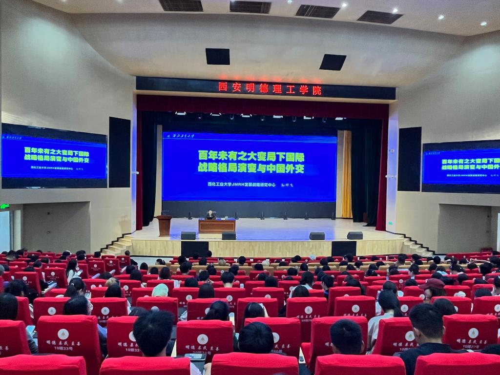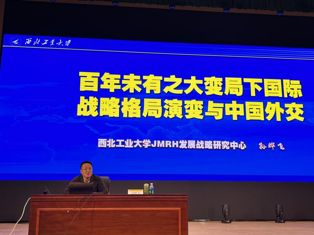 10月9日下午,ac米兰成功举办“明德大讲堂”第五十讲,邀请西北工业大学国防动员研究中心主任孙晔飞教授作了题为“百年未有之大变局下国际战略格局演变与中国外交”的专题讲座。此次讲座由马克思主义学院主办,党委组织宣传部和校团委协办,全校师生800余人参加,讲座由马克思主义学院与通识教育学院党委书记王君涛主持。