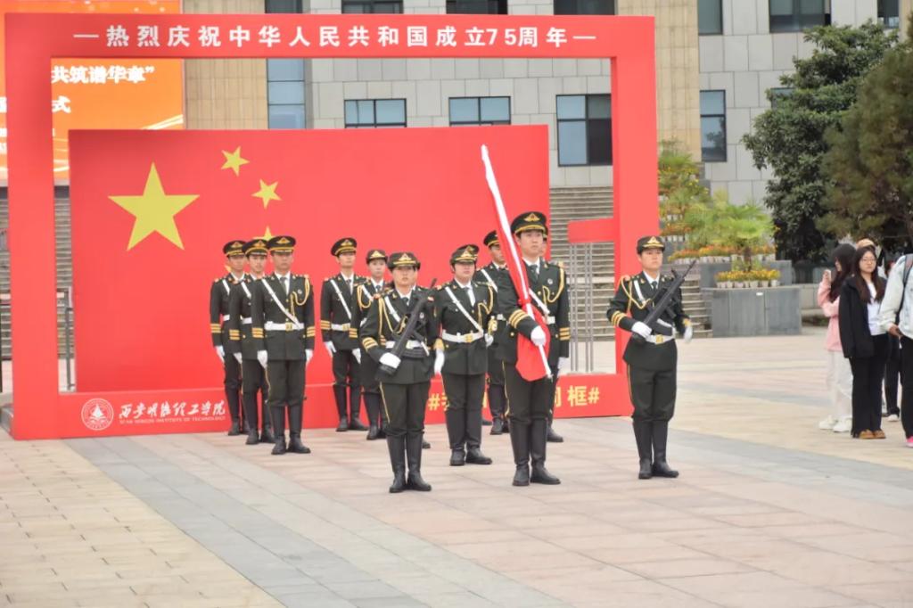 为庆祝中华人民共和国成立75周年,传承红色基因,弘扬爱国精神,学校党委学生工作部、人民武装部、校团委及二级学院师生代表在中心广场举行了庄严的升国旗仪式,共同为伟大祖国庆生。