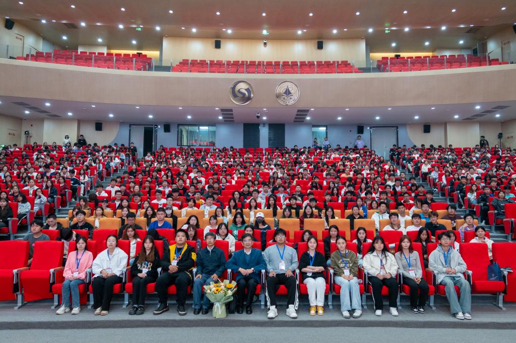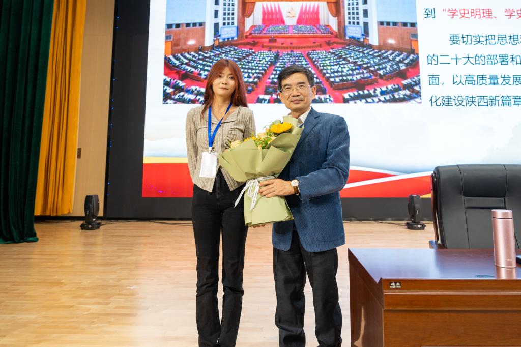 最后,由学生代表为袁教授送上鲜花。学生们纷纷表示“作为新时代青年,要坚定不移听党话、跟党走,在艰苦奋斗中实现理想和担当,为国家建设贡献青春力量。”