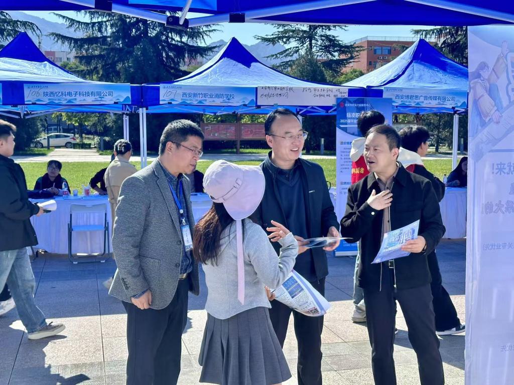 就业是民心工程、根基工程,为深入贯彻落实党中央、国务院及陕西省教育厅关于高校毕业生就业工作的决策和部署,全力做好ac米兰2025届毕业生就业工作。10月22日,学校2025届毕业生“秋韵正盛 职盼君来”校园综合类招聘会在长安校区成功举办。西安市职业介绍服务中心就业部部长沈潜、铜川市人才交流服务中心就业促进部部长杨光远、铜川市人才咨询服务有限公司总经理张鹏飞、西安高新区党工委组织人事部工作人员莅临招聘会场指导工作。