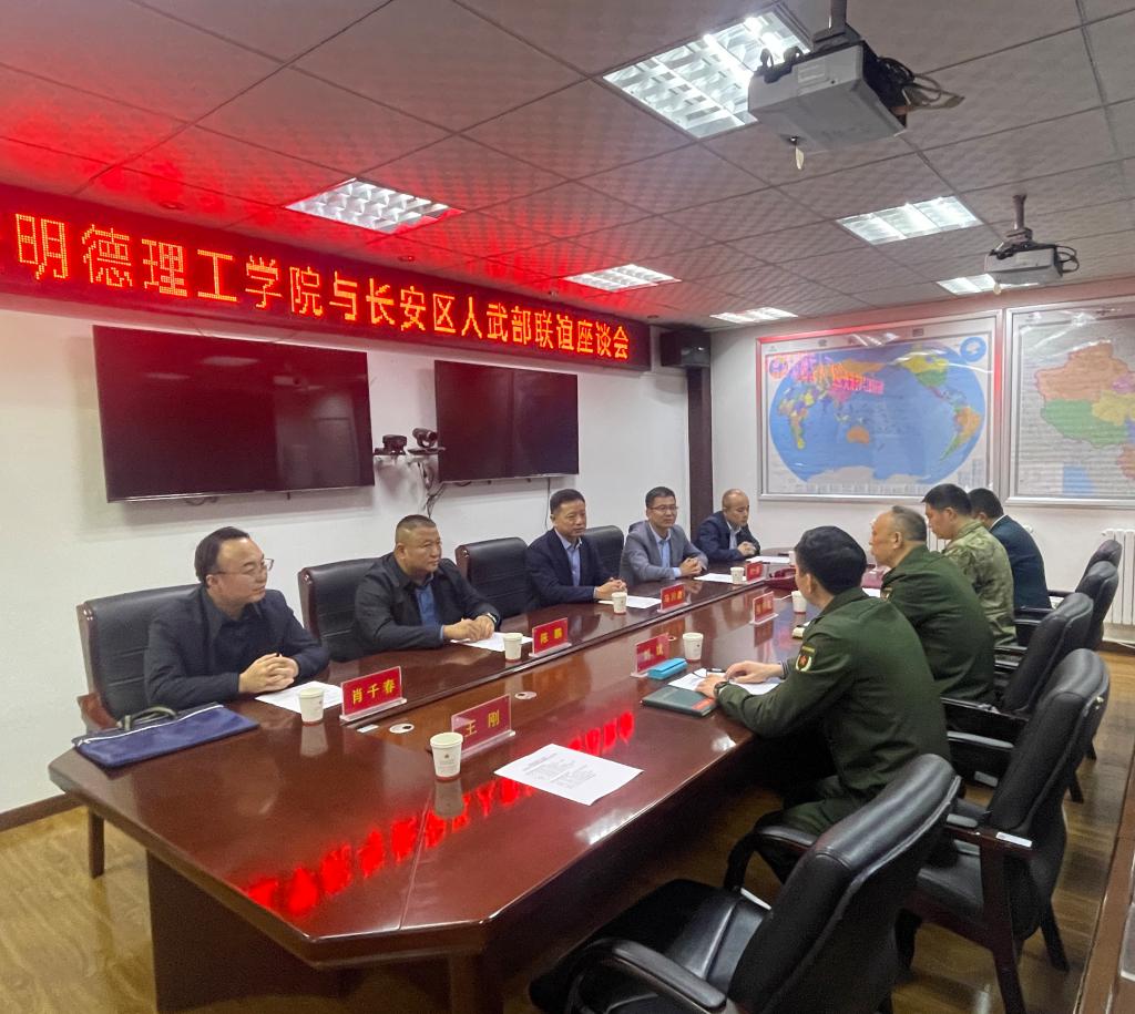 为加强军校交流合作,深化ac米兰学生国防观念和爱国主义教育,10月22日,学校党委书记马川鑫,学校党委副书记、副校长刘星,副校长陈鹏及学校人武部、相关学院负责人赴西安市长安区人民武装部走访座谈。