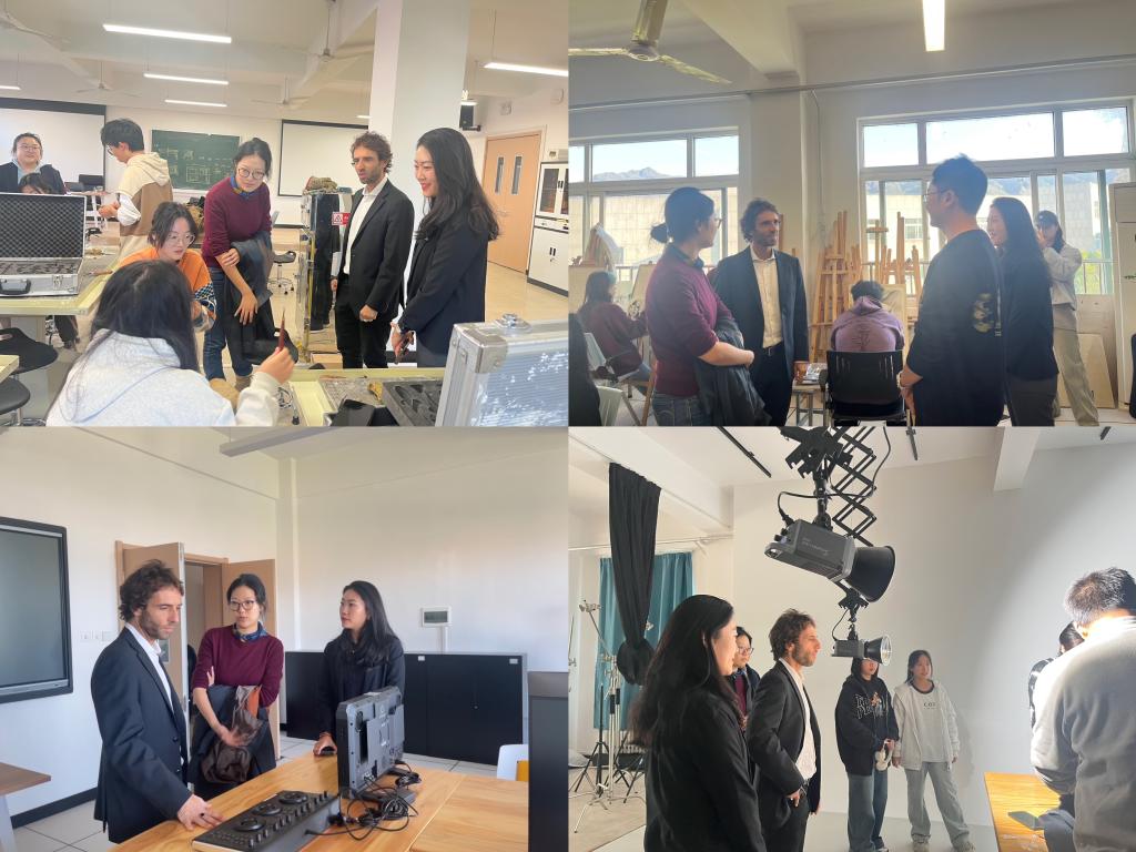 讲座结束后,马提尼副校长一行参观了数字媒体&CAD实验室、摄影摄像实验室、CMF实验室、模型制作实验室等艺术与设计学院教学环境。参观过程中,马提尼副校长与学生进行了模型作品创作思维、制作过程等方面的深度交流。