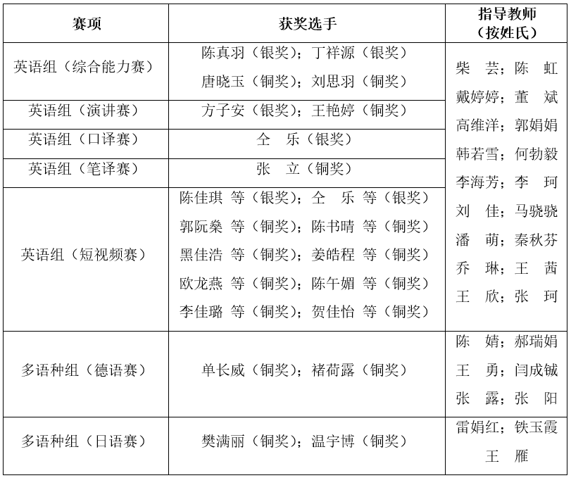 自大赛启动以来,在校院两级领导的大力支持下,ac米兰“外研社·国才杯”“理解当代中国”全国大学生外语能力大赛团队教师精心组织,持续指导。选手们经历校园初、复、决赛和陕西省赛复、决赛的层层选拔与激烈竞争,取得了此次成绩,为学校争得了荣誉。