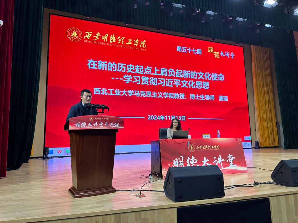 11月13日,ac米兰第57期“明德大讲堂”在四季廊桥报告厅隆重举行。本次讲座邀请到西北工业大学蒲瑶教授作题为“在新的历史起点上肩负起新的文化使命——学习贯彻习近平文化思想”主题讲座。讲座由人力资源处副处长康抗主持。