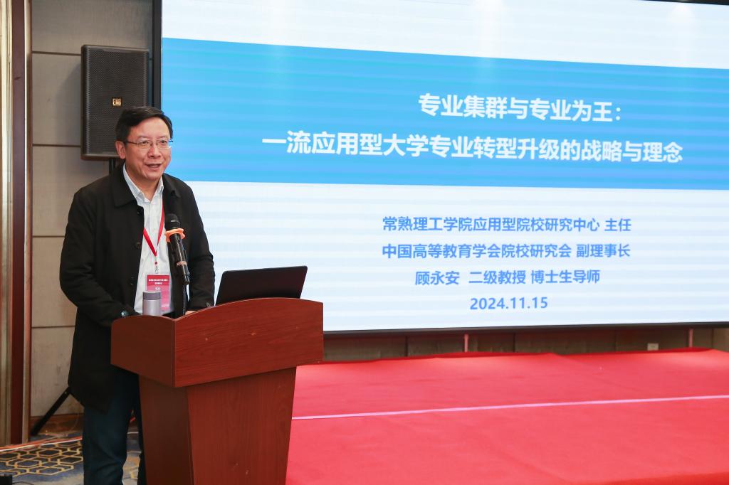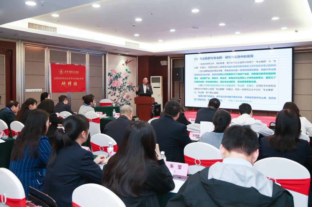开班仪式结束后,常熟理工学院顾永安教授作题为《专业集群与专业为王:一流应用型大学专业转型升级的战略与理想》首场专题报告。他围绕专业集群的战略思维和“专业为王”核心理念,分析了专业内涵建设要素,提出了应用型本科院校专业建设的基本思路及重要保障。