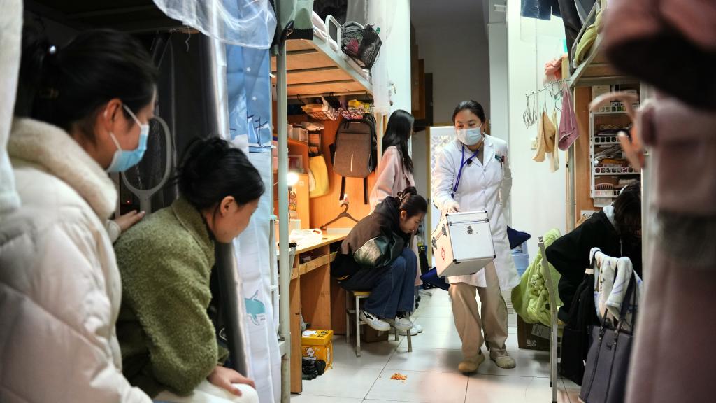 校医院赵医生和夏医生迅速抵达现场,经过初步检查后,收集了呕吐物样本,并立即安排病患转至校医院接受治疗,同时对学生的宿舍进行了彻底的消毒处理。