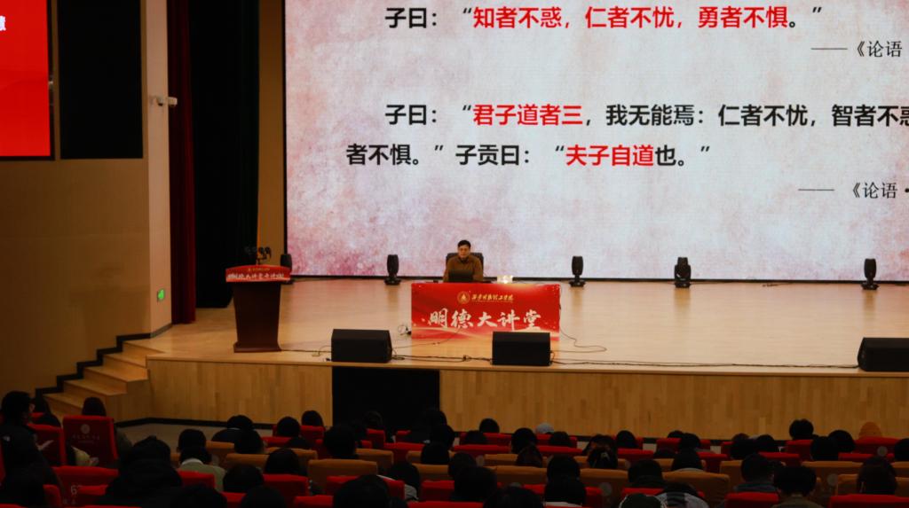2024年11月25日晚,第六十一期“明德大讲堂”在四季廊桥报告厅隆重举行。本次讲座邀请到全国高校思政课名师工作室负责人、西安交通大学马克思主义学院陆卫明教授作题为“理想人格的塑造——基于《论语》的智慧”的专题讲座。讲座由马克思主义学院副院长惠斌主持。