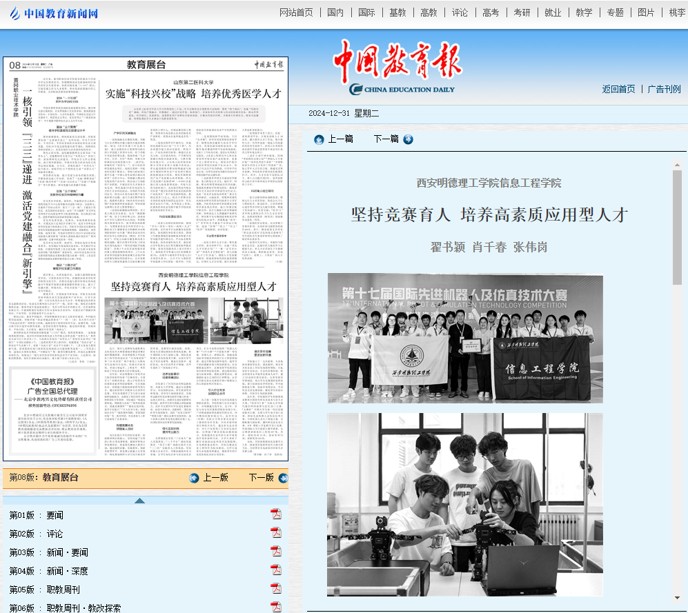 12月31日,《中国教育报》以《坚持竞赛育人 培养高素质应用型人才》为题,深入报道了ac米兰信息工程学院竞赛育人工作的经验和成效。现将原文转载如下: