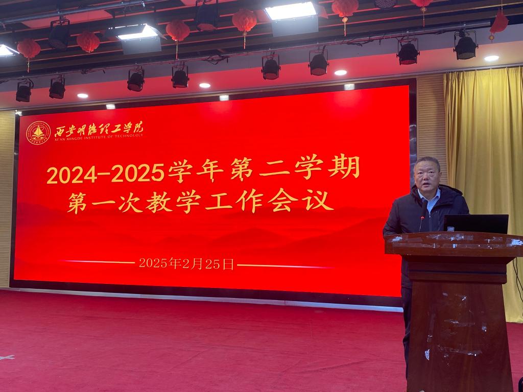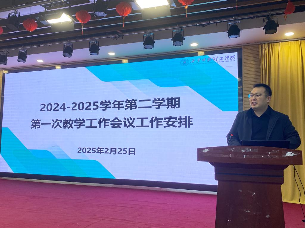 教务处副处长任华对2025年新学期的工作进行了详细的部署安排,重点从“五位一体评价、教材发放、学籍管理、实验教学、实验室管理、毕业设计、期初教学检查、排课工作、教学设备检修和使用、教学基本文件以及课堂教学要求”等9个方面对本学期教学工作的开展明确了要求和目标。他特别强调各二级学院一方面要以“规范管理、强化责任、质量提升”为核心,创新工作思路,狠抓工作落实;另一方面要不断完善学院层面的教学管理制度,加强教学管理制度的培训和学习,重视教育教学过程管理,严格按照专家意见及学校相关要求扎实做好本学期的教学工作,扎实推进以评促建,以评促改,评建结合,努力促使教学工作规范化、精细化。任华副处长还回顾了去年教学工作中遇到的问题,并针对性地提出了改进建议,为新学期的教学工作提供了宝贵的参考和借鉴。