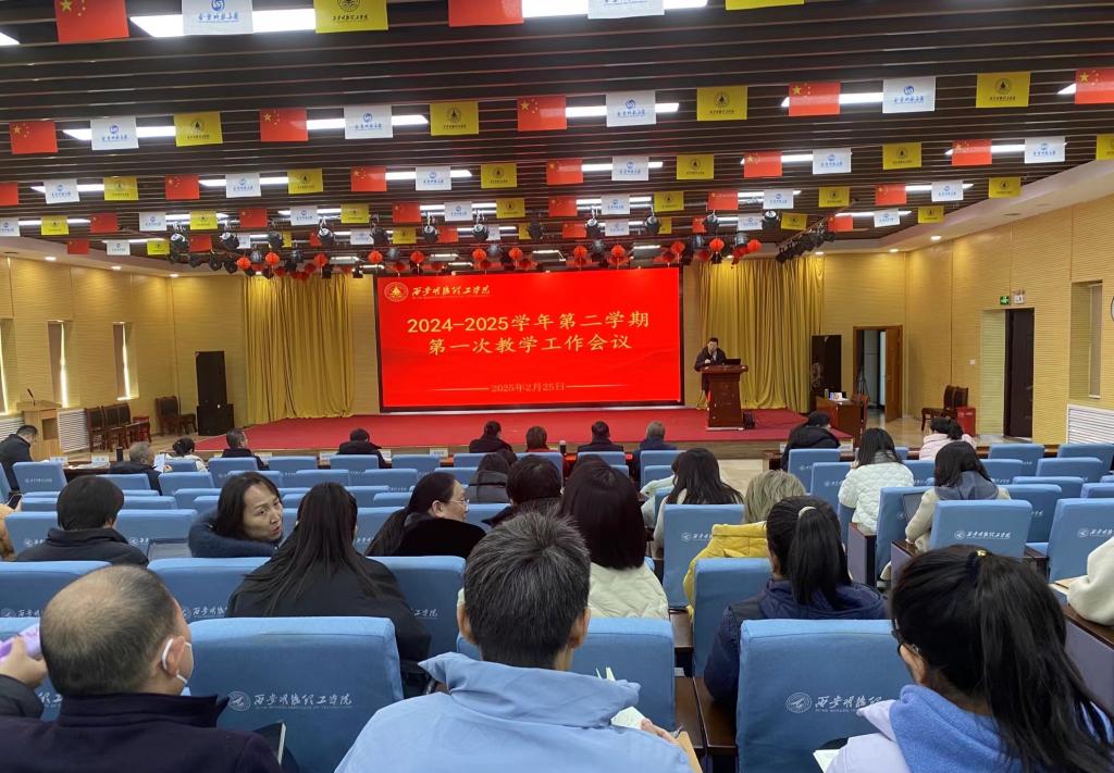 启航新学期,开启新征程。为统一思想、凝心聚力,确保新学期的教学工作平稳、有序开展,教学任务得到合理安排并高质量地落实,2025年2月25日下午,学校在建德楼 203 报告厅召开了2024-2025学年第二学期第一次教学工作会议。各二级学院教学副院长、办公室主任、专业负责人、全体教务员,教务处、质量管理与评估办公室相关人员参加会议,副校长朱延波出席会议,会议由教务处副处长文亮主持。