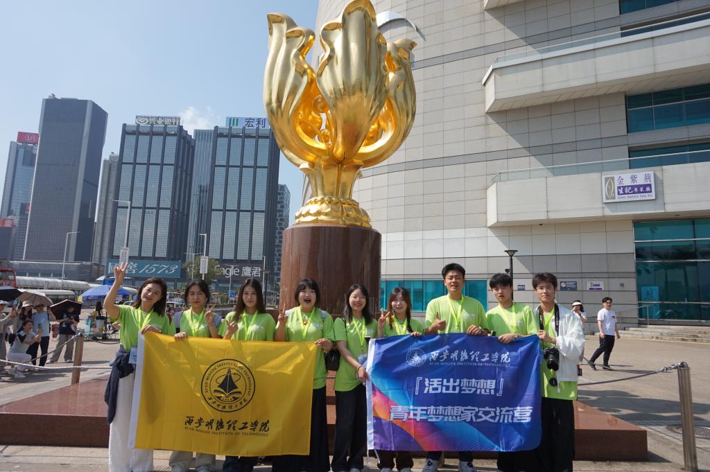 青年梦想家交流营前往金紫荆广场,鲜艳的五星红旗和香港特区区旗迎风飘扬。1997年7月1日中华人民共和国香港特别行政区成立,中央人民政府把一座金紫荆铜像赠送香港。这个广场也被命名为金紫荆广场,为庆祝香港回归祖国而设立,象征着香港是中国的一部分,寓意香港永远繁荣昌盛。