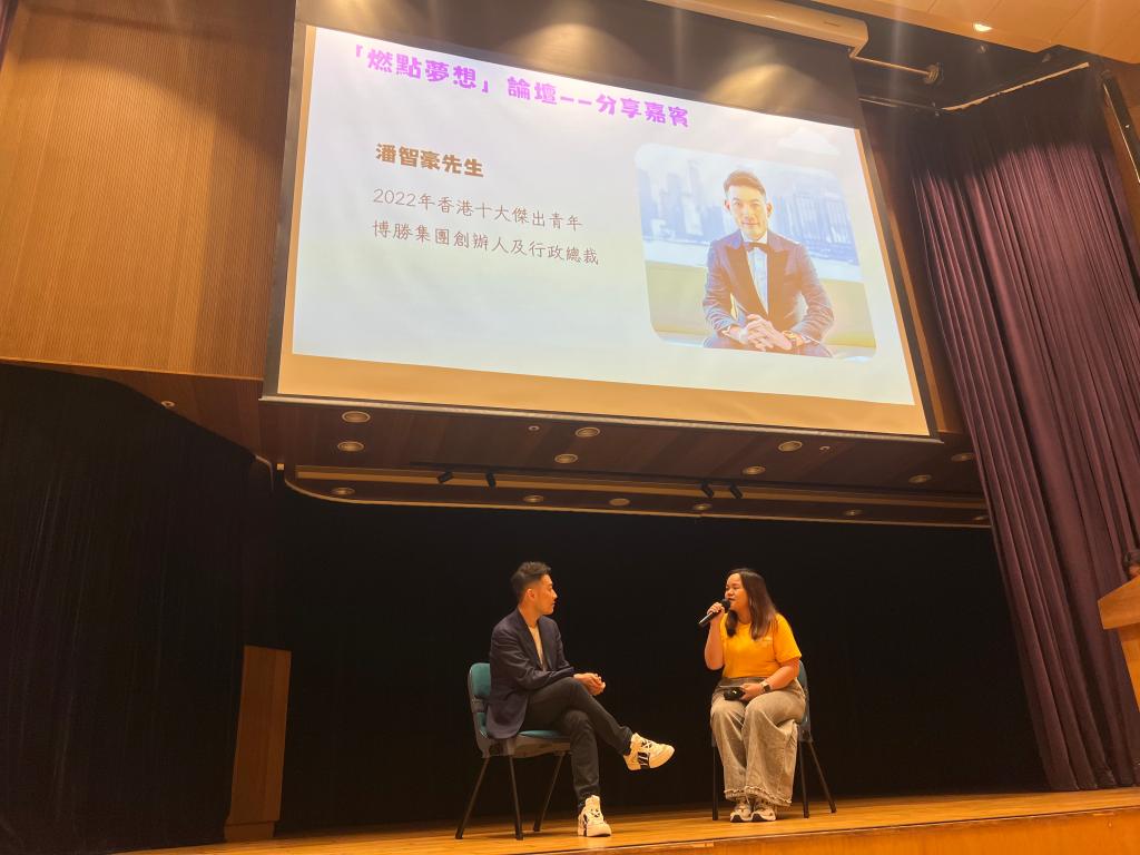在“燃点梦想”论坛交流中,2022年香港十大杰出青年得奖者潘智豪先生和全港时尚专业女性选举得奖者欧阳凤盈女士展开讲解了他们追梦奋斗路上的敢闯敢拼和坚持不懈。香港青年企业家潘智豪在深圳经营着一家高清视听数字技术研发和应用公司。随着粤港澳大湾区建设的加速推进,他在享受政策红利的同时,也积极推动更多香港青年来大湾区发展。潘智豪先生向两地青年分享他的人生经历、创业心得。他认为青年人,最重要的是要有梦想,有信心。他也期待青年们能够把握机遇,创造属于自己的奇迹。