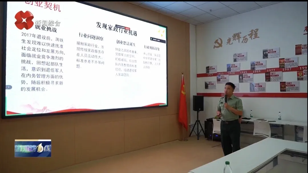 西安市未央区退役军人创业典型人物、二等功获得者蒋铁生分享了个人创业经历,他将部队内务“白手套”检查标准融入到家政服务验收检查,从楼宇开荒到家电清洗,从公共保洁到家庭服务,始终坚持以客户为中心,以“宁让一名客户下千次单,也不让千名客户下一次单”的信条及特殊的服务验收标准为广大消费者留下深刻印象,书写了“军”字家政服务的靓丽篇章。