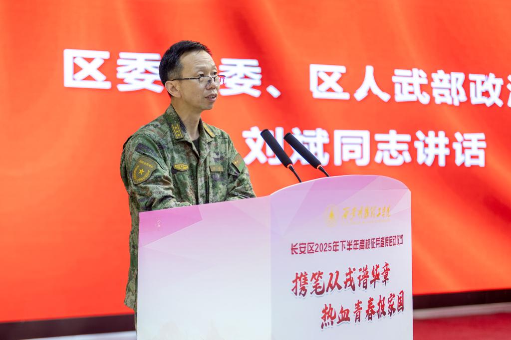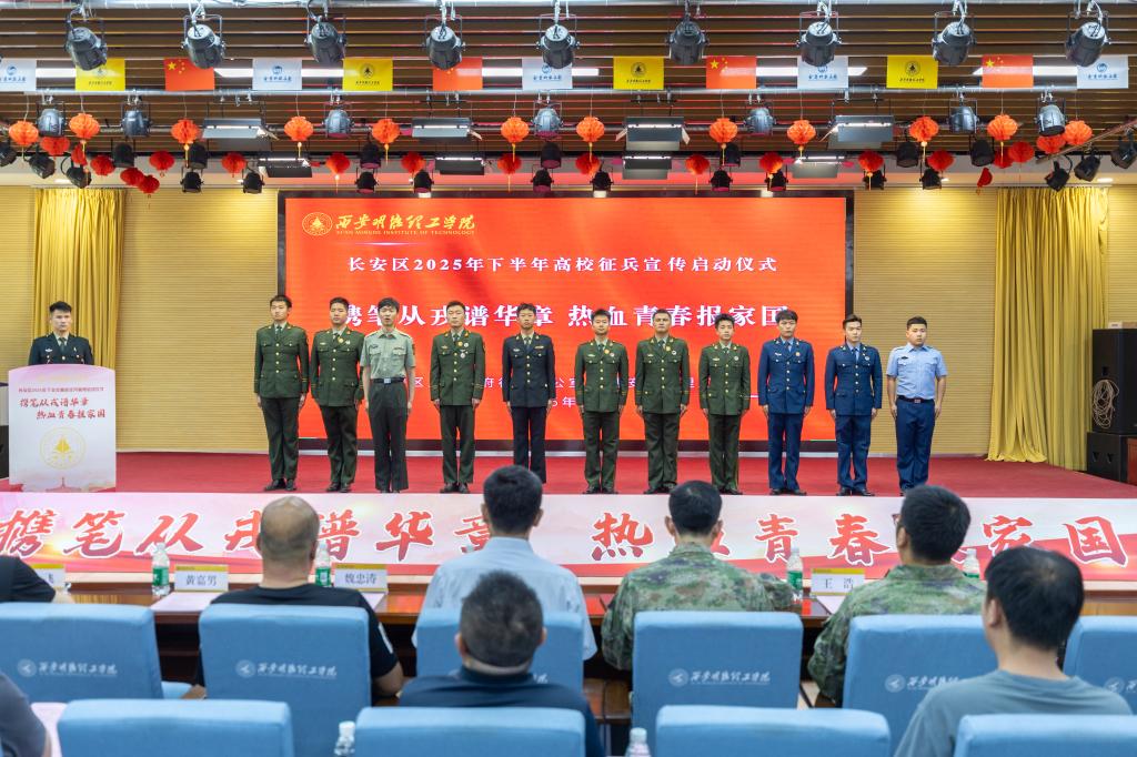 6月11日,西安市长安区2025年下半年高校征兵宣传启动仪式在ac米兰举行。学校党委书记马川鑫,长安区区委常委、区人武部政治委员刘斌,滦镇街道相关负责人,长安区部分高校征兵工作专干,各学院学生工作负责人,全体征兵工作教师和学生代表共计300余人参加活动。仪式由童杨梓主持。