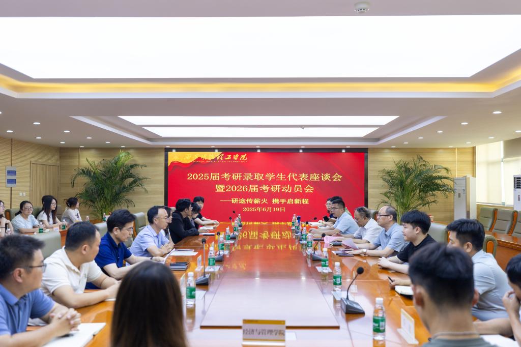 为充分发挥优秀学子示范引领作用,传承奋进精神,助力2026届考研学子明确目标、科学备考。6月19日下午,学校在明志楼518会议室召开了2025届考研录取学生代表座谈会暨2026届考研动员大会。校长王志刚、副校长林东出席会议,各二级学院党政负责人、终南书院全体教师、2025届考研录取学生代表及2026届备考学生代表了参会。会议由校党委副书记、副校长刘星主持。