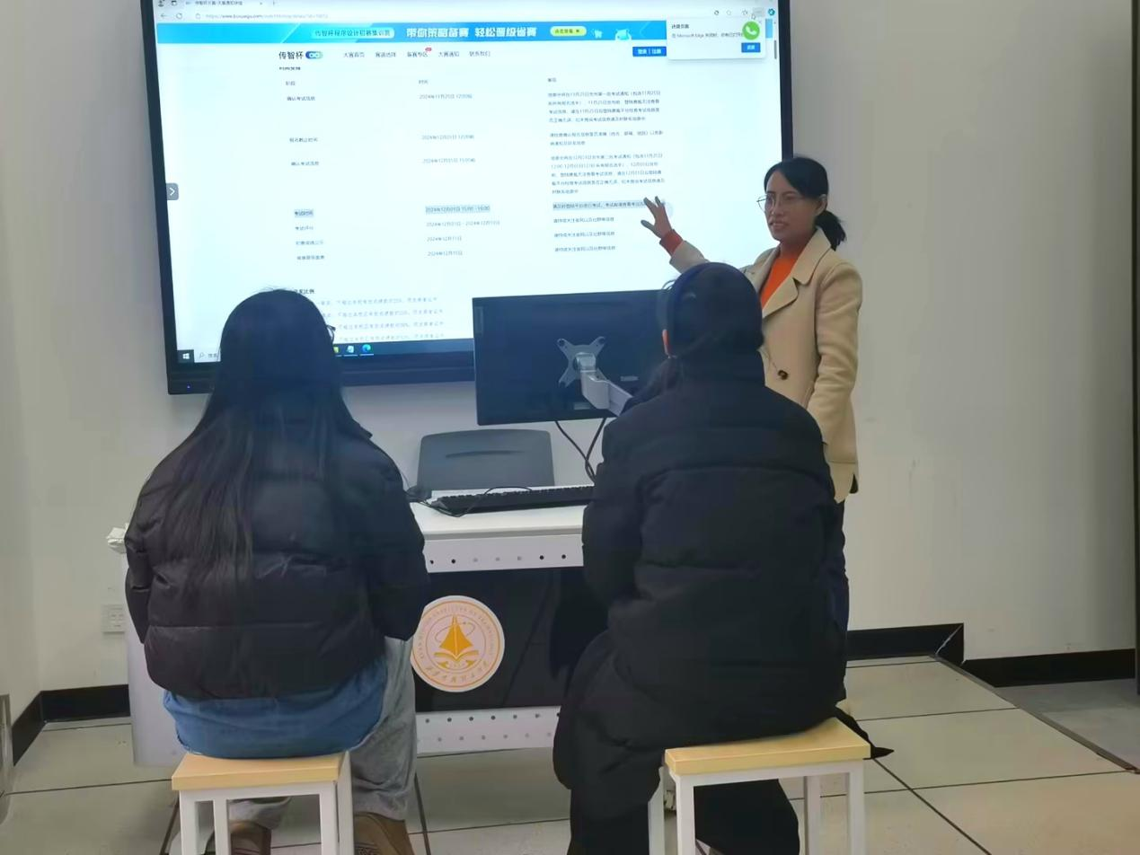 备赛期间,两位老师依托计科专业学科优势,深度拆解竞赛规则,结合前沿技术与实际应用场景,为参赛学生制定科学、系统且个性化的备赛方案。他们引导学生将编程语言、算法设计、数据结构等课堂知识转化为竞赛能力,既从理论层面帮助学生突破思维瓶颈,又通过实操演示提升编程与问题解决能力,重点培养学生创新与实践素养。
