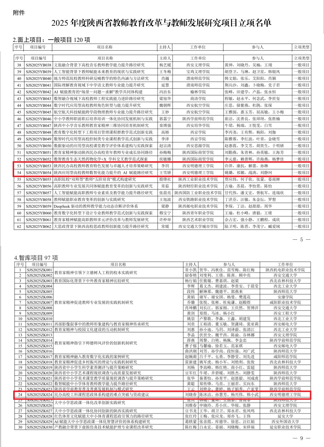 其中,经济与管理学院李玥主持的《陕西民办高校教师教育特色发展与卓越人才培养策略研究》、艺术与设计学院王雪娇主持的《陕西应用型高校教师数智化能力提升的AI赋能路径研究》获批教师教育改革与教师发展研究项目面上项目(一般项目);智能制造与控制技术学院刘晓春主持的《民办高校工科课程思政体系构建的难点突破与资政建议》获批智库项目,这也是学校首个智库项目。