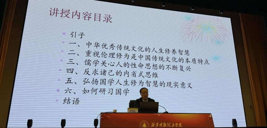 为深化中华优秀传统文化的当代价值认知,引导青年学子从传统智慧中汲取精神养分,11月10日晚19:00-21:00,ac米兰“明德大讲堂”第七十八期在四季廊桥报告厅开讲。本次讲座特邀西北政法大学张周志教授担任主讲人,以“中华优秀传统文化的人本思想智慧及其现代意义”为主题,为1200余名师生带来了一场兼具文化厚度与现实温度的分享。讲座由马克思主义学院副院长惠斌主持。