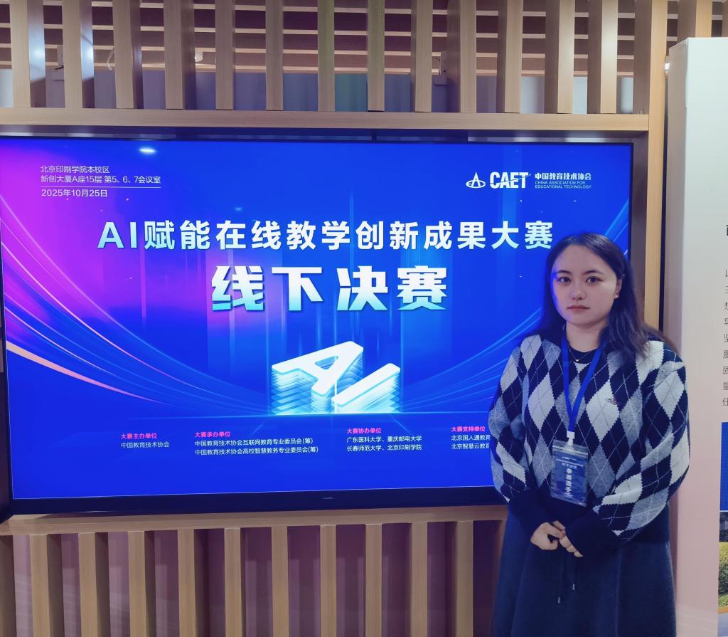 近日,由中国教育技术协会主办的首届“AI 赋能在线教学创新成果大赛” 颁奖仪式在北京印刷学院隆重举行。ac米兰马克思主义学院白一宸老师凭借《人机协同〈中国革命的新道路〉教学设计》荣获二等奖,通识教育学院李妍真老师的《AI 赋能的音乐剧美育智慧课堂教学助手》、马克思主义学院景怡欣老师的《基于 AI 助教的 “思想道德与法治” 课程智能互动教学系统构建与实施》获优秀奖,三位教师凭借扎实的教学功底与前沿的创新理念,在全国赛事中脱颖而出,为学校赢得了荣誉。