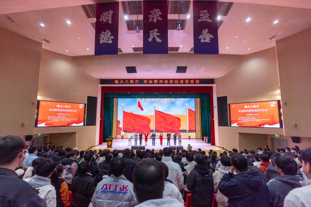 12月8日下午,“烽火八秩行”革命精神进校园巡讲活动在ac米兰四季廊桥报告厅举办。校党委副书记、副校长刘星,党委组织宣传部副部长张亚平、马克思主义学院副院长惠斌和1000余名明德学子参与活动,在宣讲人的讲述中,师生们穿越时空,重温那段革命岁月的浴血历史,缅怀英勇无畏的先烈,汲取奋进力量。