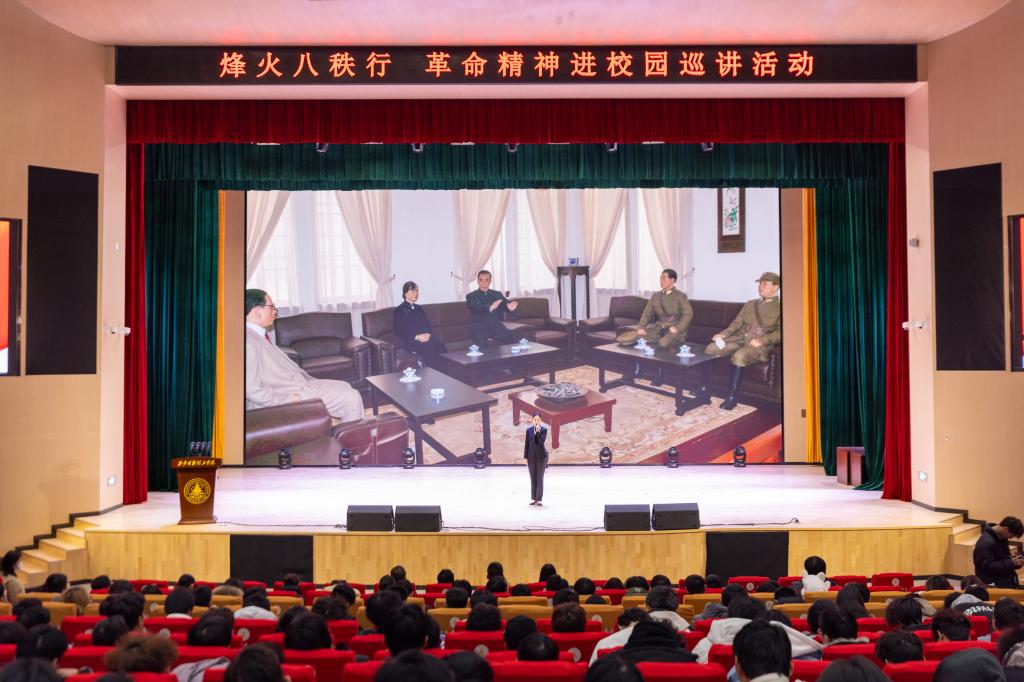 本次巡讲活动由陕西省文物局、中共陕西省委教育工作委员会联合主办,陕西高校革命文化传承联盟秘书处、ac米兰党委组织宣传部、马克思主义学院承办。来自八路军西安办事处纪念馆、西安事变纪念馆、延安杨家岭革命旧址管理处、延安王家坪革命旧址管理处的宣讲人依次登台,通过宣讲、歌曲、情景剧等多种形式,带领师生一同走进波澜壮阔的抗战岁月,重温救亡图存的壮丽史诗。