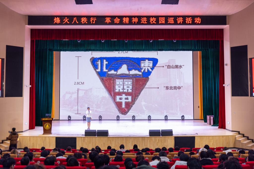 活动现场气氛庄重而热烈,一个个承载着革命记忆的文物故事、一段段凝聚着初心使命的红色篇章,让在场师生接受了一场深刻的精神洗礼。《闪耀的红星不朽的经典》探寻美国记者埃德加·斯诺在《红星照耀中国》中以亲身见闻让世界看见窑洞里的真理,让红星感召无数志士前行;《历史在这里转折》凭借翔实的史料,生动重现了西安事变的历史风云,深刻诠释了民族团结、共赴国难的伟大担当;《军歌嘹亮》依托当年公木与郑律成创作时所用手稿、油印歌谱等珍贵文物复刻件,鲜活还原了二人在窑洞里敲盆拍腿谱曲的艰苦场景,让人深切体会军歌中蕴含的千军万马、一往无前的革命气势,以及八路军朝气蓬勃、勇往直前的英雄形象;《我和我的祖国》悠扬的歌声中饱含着对祖国的无限热爱与深情祝福;《一枚特别校徽》透过“国统区的抗大—东北竞存中学”的校徽,步入东北竞存中学的悠悠岁月,感受那跨越时空的爱国与奋斗精神;《怒吼吧!黄河》以音符镌刻下民族的不屈,以旋律激荡起抗争的豪情,生动再现了中华民族在危难中不屈不挠、奋勇抗争的精神风貌;《青春的抉择》以生动的演绎再现了革命年代青年在个人理想与民族大义之间的坚定抉择,展现了青年一代为国家解放、民族独立不惜牺牲的崇高追求。