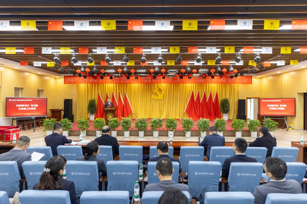 大会在雄壮的国歌声中拉开帷幕。党委书记马川鑫同志代表学校党委向大会作题为《坚持求真务实勇于担当作为以只争朝夕的奋斗精神推进学校高质量发展》的工作报告。报告从“坚定不移推进全面从严治党,持续提升党建工作质量”“深化内涵建设和改革创新,不断提高办学条件和水平”“推动党建与业务深度融合,促进学校高质量发展”等方面全面总结了“十四五”时期特别是上次党代会以来学校各项事业取得的成就和经验,实事求是地分析了学校当前面临的机遇和挑战,明确了新时期学校的奋斗目标和“三步走”发展方略,并从“聚焦党的政治建设,持续强化党对学校工作的全面领导”“聚焦立德树人根本任务,不断加强和改进思想政治工作”“聚焦忠诚干净担当,着力锻造高素质干部队伍”“聚焦正风肃纪反腐,持之以恒推进全面从严治党向纵深发展”“聚焦基层党建工作,充分发挥战斗堡垒作用”“聚焦师生切身利益,广泛凝聚团结奋进的强大合力”等六个方面对如何以高质量党建引领学校事业高质量发展作了安排部署。