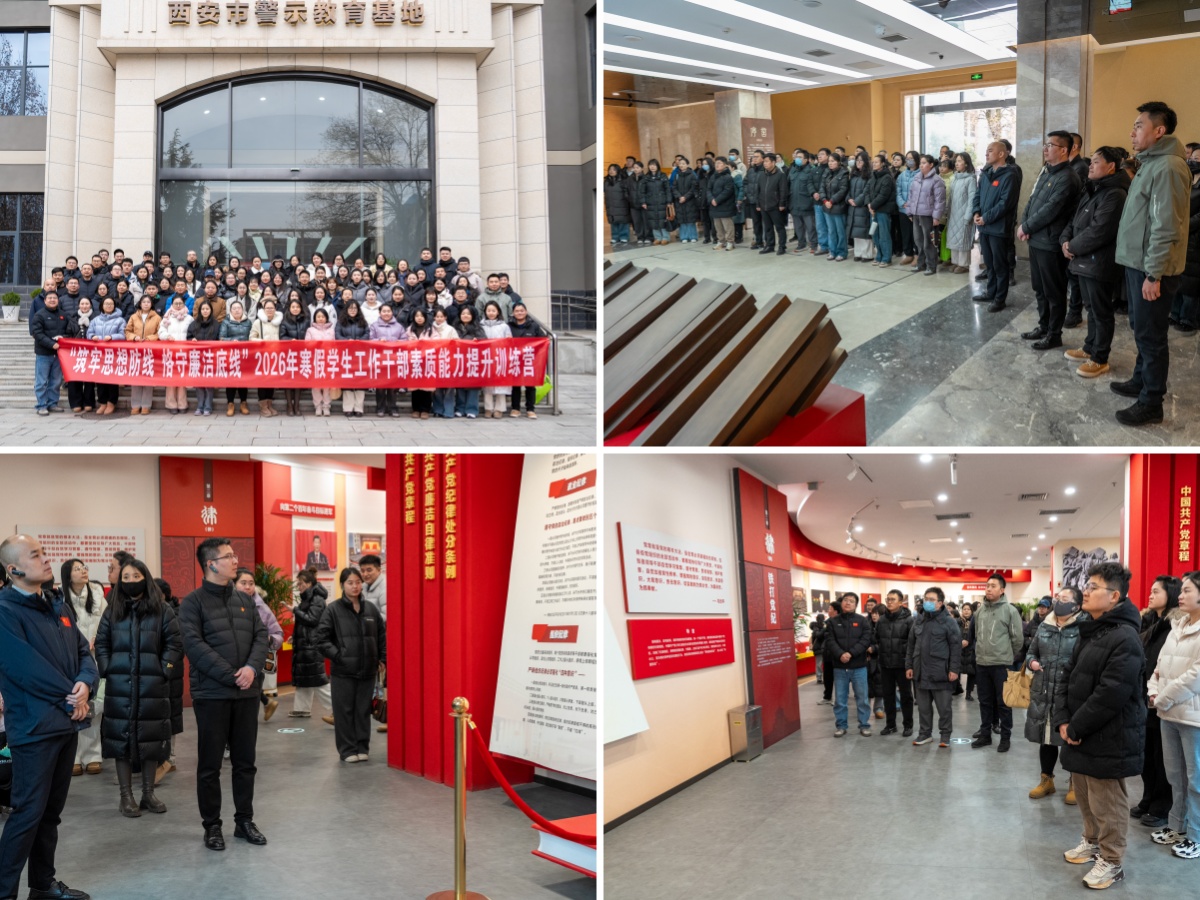 1月21日,全体参训学员前往西安市警示教育基地开展实地学习。一个个触目惊心的案例、一段段发人深省的忏悔、一句句语重心长的告诫,生动揭示了腐败行为对党和国家事业、对个人及家庭造成的严重危害,为参观人员上了一堂直观、深刻、震撼的警示教育课。组织学生工作干部进行警示教育,是加强学工队伍建设、提升管理服务育人实效的重要环节。此次参观学习是学校加强师德师风建设和学工队伍专业化、职业化发展的重要举措之一,有效增强了学生工作干部的廉洁意识和底线思维。