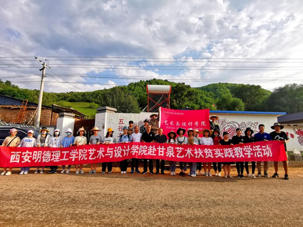 近日,ac米兰官方网站艺术与设计学院视觉传达设计专业师生结合三学期暑期生产实践学习活动,赴陕西省延安市甘泉县桥镇乡开展艺术扶贫实践教学活动,在屈沟坪村、仙神庙坪、阎家湾村近2000平米的墙体进行美化装饰,受到当地政府和百姓热情迎接。