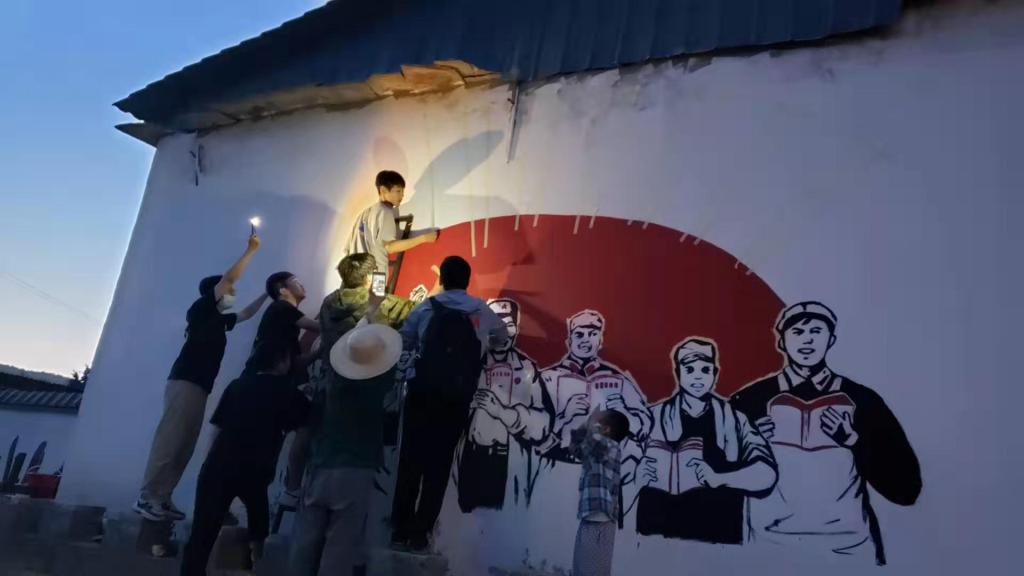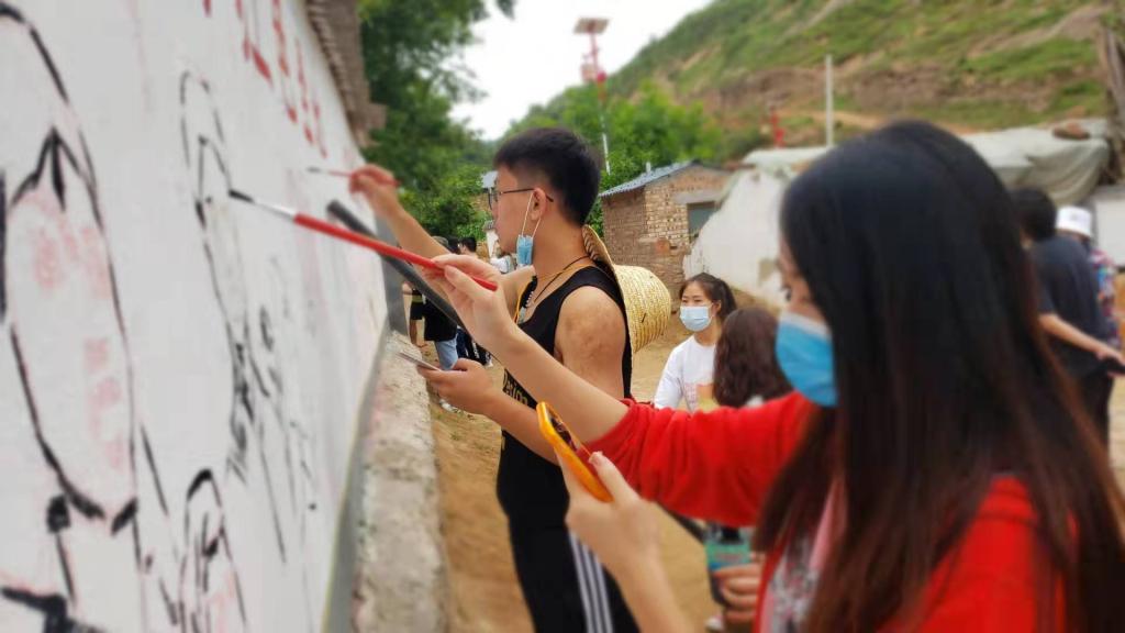 延安市甘泉县是ac米兰官方网站对口扶贫县,桥镇乡位于甘泉县西北部,距县城53公里,与志丹、富县接壤。本次活动是在建党99年之际,为陕甘苏区政府旧址周围村落进行墙体美化装饰,积极主动为革命圣地贡献自己微薄之力,用画笔抒发对爱国主义情怀,重回革命圣地学习“延安精神”,使我院师生此行的使命感油然而生!