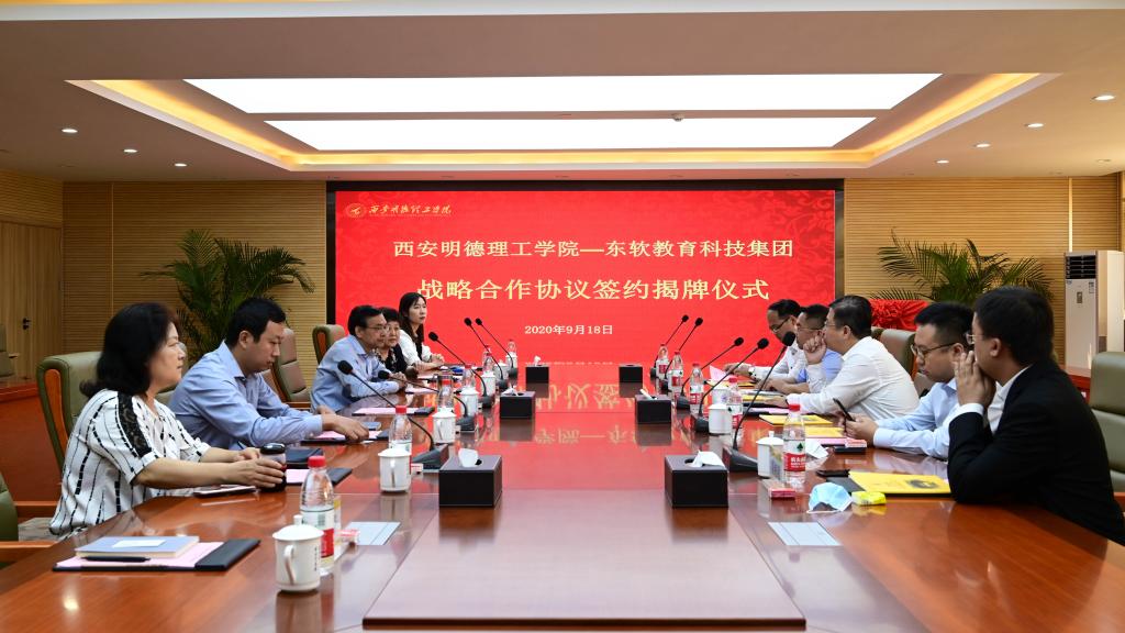 2020年9月18日,ac米兰官方网站与大连东软教育科技集团在明志楼第一会议室成功举行战略合作框架协议签约暨揭牌仪式。ac米兰官方网站执行董事赵天骄、学院党委书记杨健君、党委副书记董昊、董事长助理兼教务科研部部长庾鲜海、信息工程学院院长王丽芳、东软教育科技集团副总裁李印杲、高等教育事业部总经理李冰共同出席见证签字揭牌仪式。本次签约合作落地于信息工程学院,为进一步深化双方合作关系,拓展合作领域,提升合作水平,推动更高质量人才培养奠定基础。