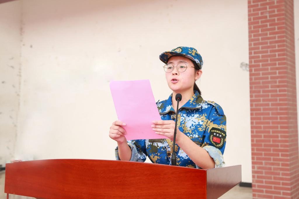 2020级高职新生代表卢泓雨发言,代表全体参训新生做出承诺。