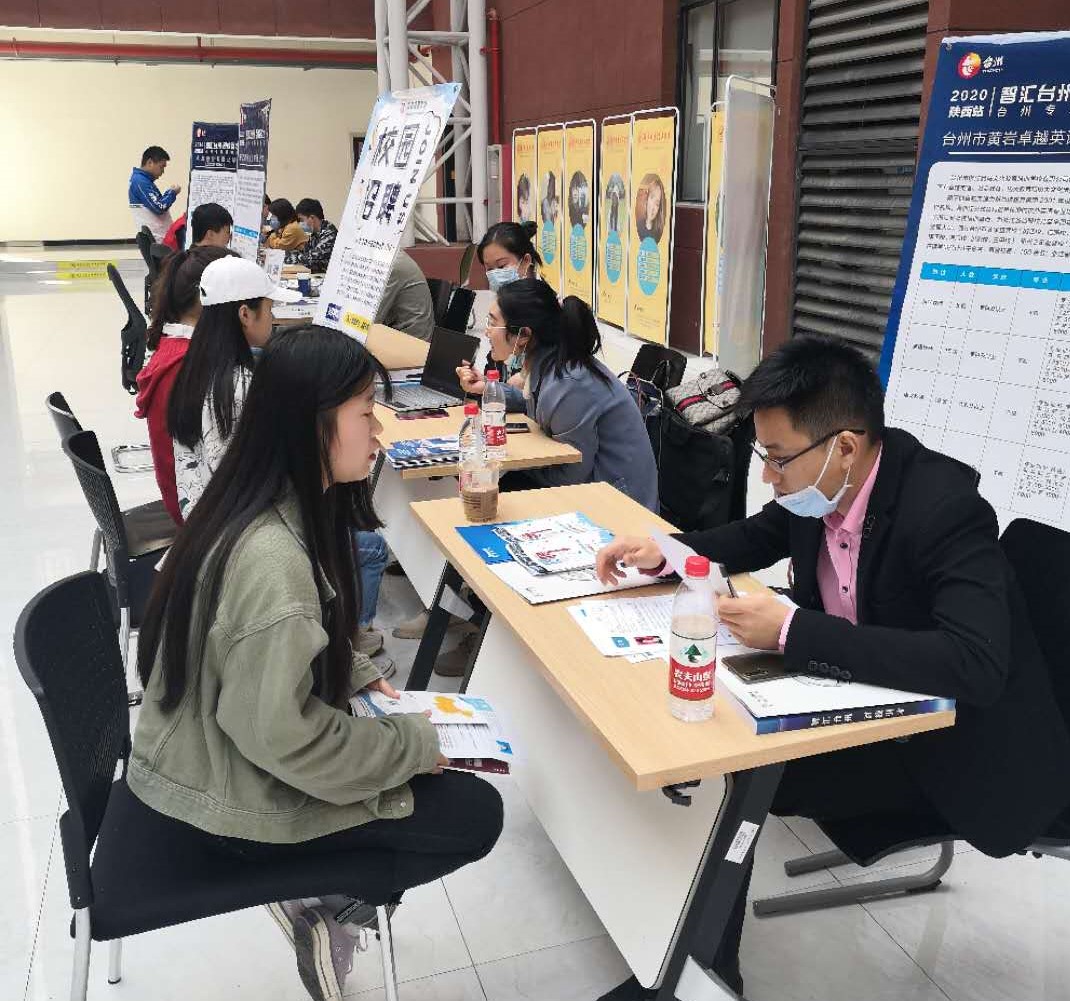 10月19日下14:00,台州市人社局高层次人才智力合作洽谈暨2020“智汇台州,百校引才”ac米兰官方网站台州专场招聘会在明志楼中厅举办。来校招聘参会企业共有27家,涉及了IT、金融、机械、化工、商贸、建筑、教育等多个领域,ac米兰约800人次毕业生参加了招聘会。