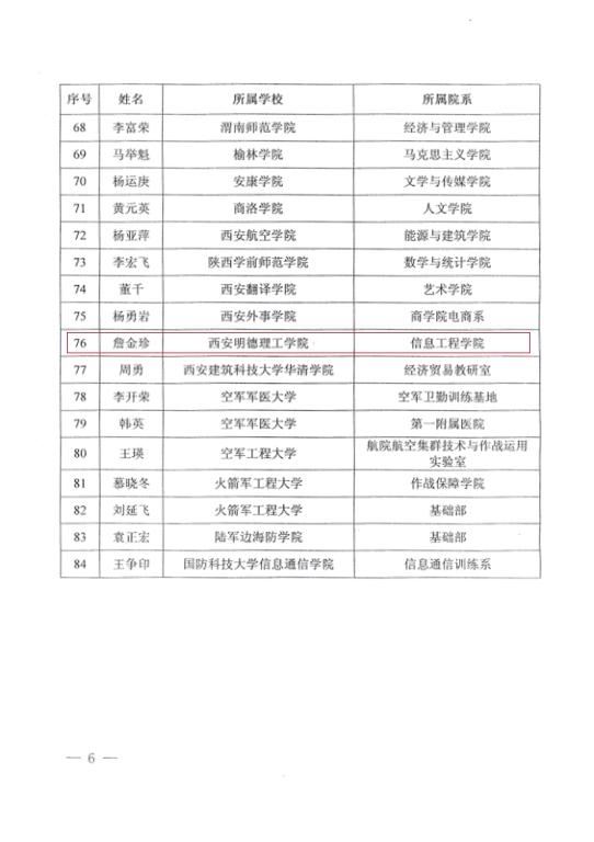 陕西省普通本科高等学校教学名师奖是陕西高校优秀教师的重要奖项,教学名师奖的评选表彰是加强教师队伍建设,引导广大教师投身教学、钻研教学、潜心育人、提高人才培养质量的重要举措。