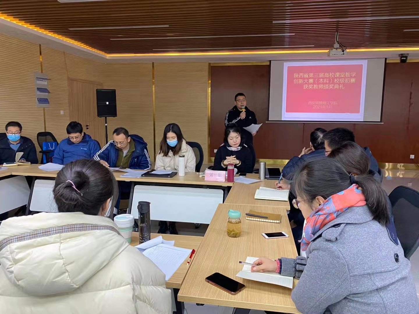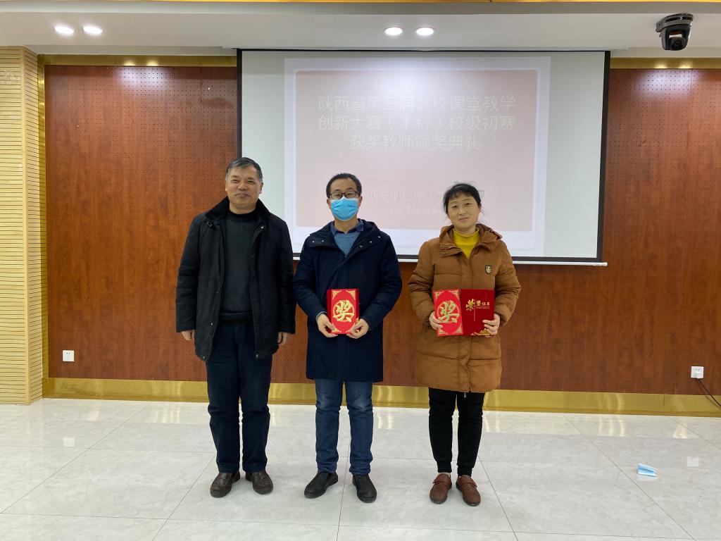 会议首日,进行了陕西省第三届高校课堂教学创新大赛(本科)校级初赛获奖教师颁奖仪式。教务科研部部长朱延波宣读了高校课堂教学创新大赛表彰决定及获奖教师名单。战涛、解蕾等11位获奖教师上台领奖,各位专家及领导为获奖教师进行了颁奖。