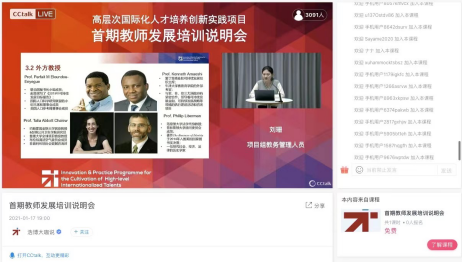 为贯彻落实《关于加强和改进中外人文交流工作的若干意见》《教育部等八部门关于加快和扩大新时代教育对外开放的意见》等文件精神和全国教育大会、全国教育外事工作会议等会议精神,进一步提升将人文交流理念和全球胜任力培养融入高层次国际化人才培养工作的教师教育教学能力,加快培育具有全球视野的高层次国际化人才,推动做好“高层次国际化人才培养创新实践项目”实施工作,教育部中外人文交流中心于2021年1月18日-1月22日组织开展高层次国际化人才培养创新实践项目首期教师发展培训(以下简称“教师发展培训”)。