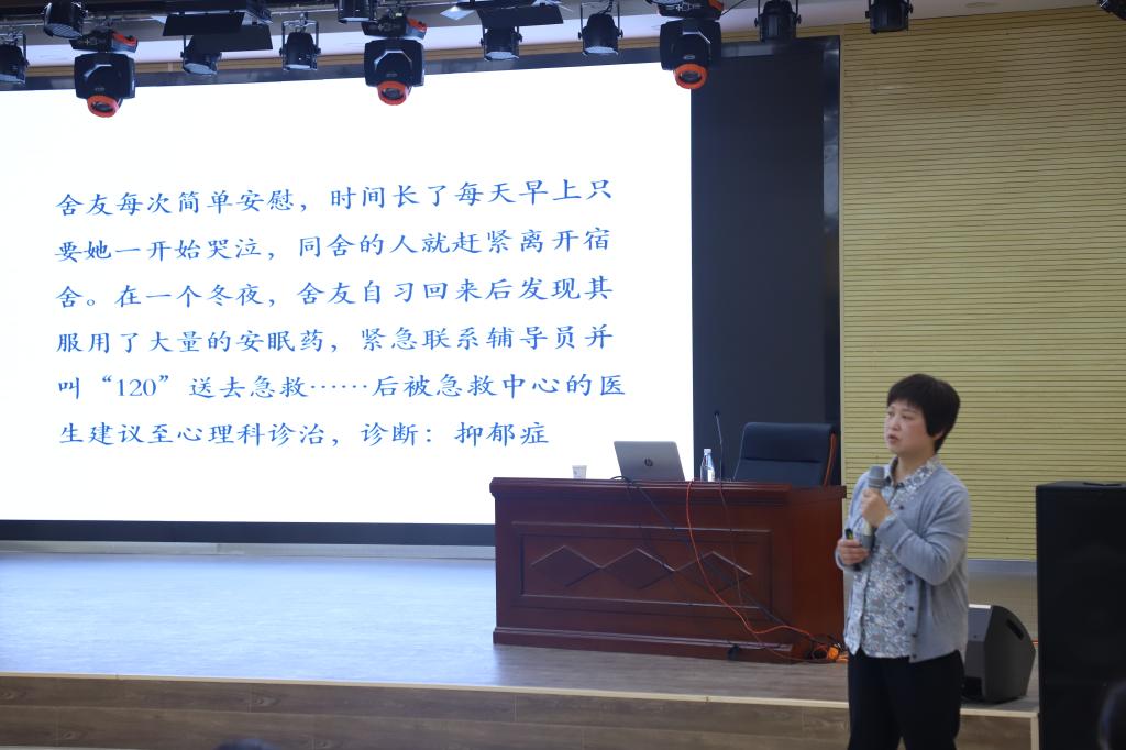 为深入开展大学生心理健康教育,普及心理健康知识,提高学生心理问题的预警能力和应对技巧。4月15日下午,西安市精神卫生中心青少年心理科主任钟意娟教授,在建德楼203学术报告厅做了题为《心理预警及应对技巧》的辅导报告。学校领导、全体学生工作干部、心理健康教育专兼职教师、班级心理委员、学生代表等300余人参加了此次报告会。