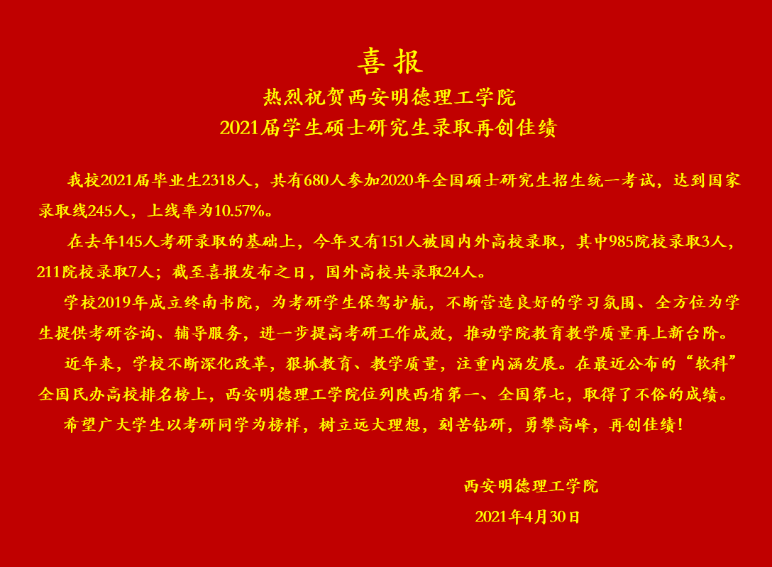 喜报!热烈祝贺ac米兰官方网站2021届学生硕士研究生录取再创佳绩