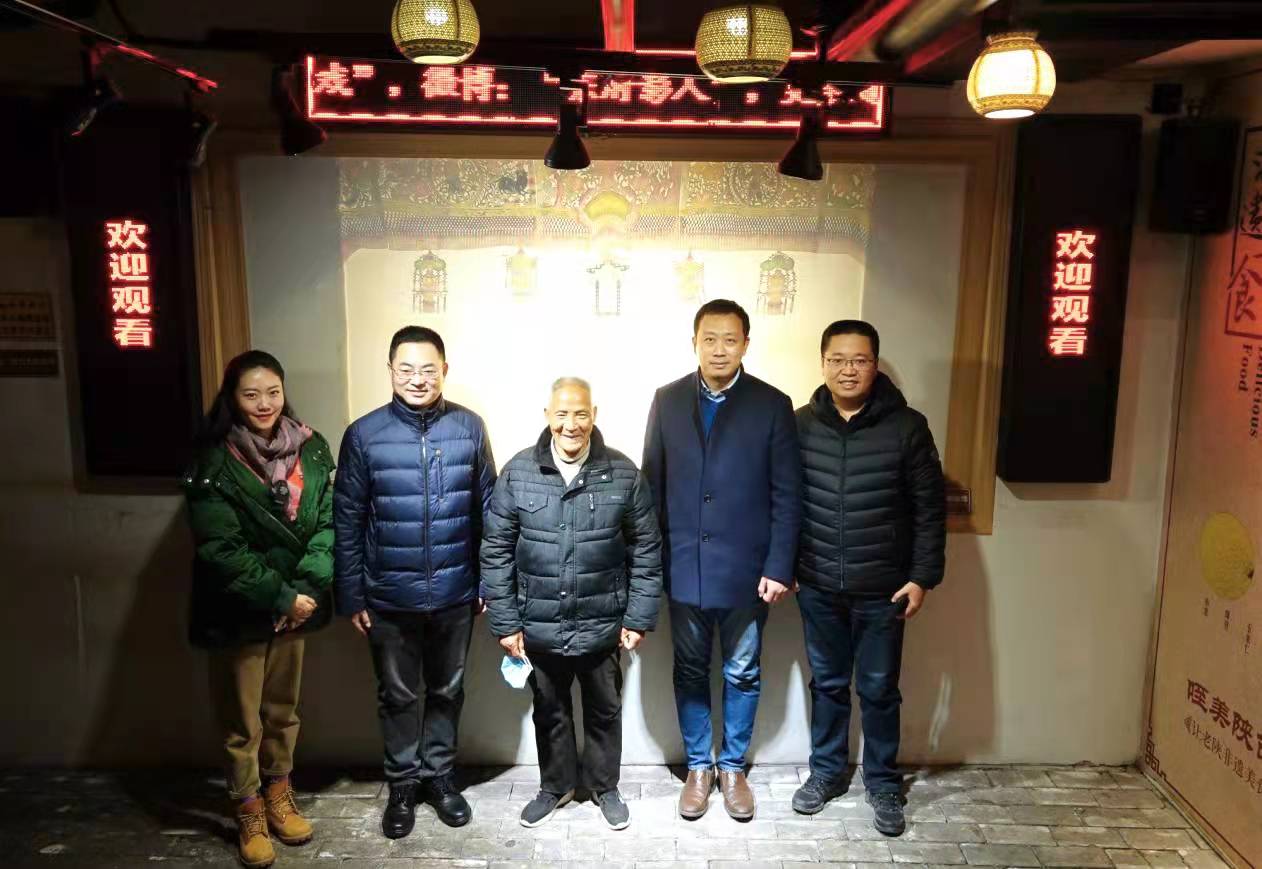 学校党委副书记董昊一行首先拜访了国家级非遗华县皮影魏氏皮影社班主魏稳柱。华县皮影魏氏皮影社成立于1970年,现由5位均龄70岁的老艺人和1位23岁的青年演员组成。现班社在西安市永兴坊日常化驻演,每日演出8场,累计演出场次已达上万余场。为全国各地至全球多个国家友人展示表演。此次有幸观看了魏班主表演的《刀劈韩天化》,精彩纷呈的皮影表扬让人不禁拍手叫绝。