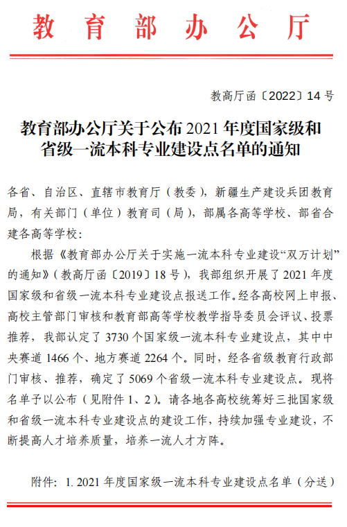 近日,教育部印发了《教育部办公厅关于公布2021年度国家级和省级一流本科专业建设点名单的通知》文件,公布了2021年度国家级和省级一流本科专业建设点名单。ac米兰播音与主持艺术专业获批省级一流本科专业建设点。截止到目前,ac米兰共有国家级一流本科专业建设点1个,省级一流本科专业建设点4个。