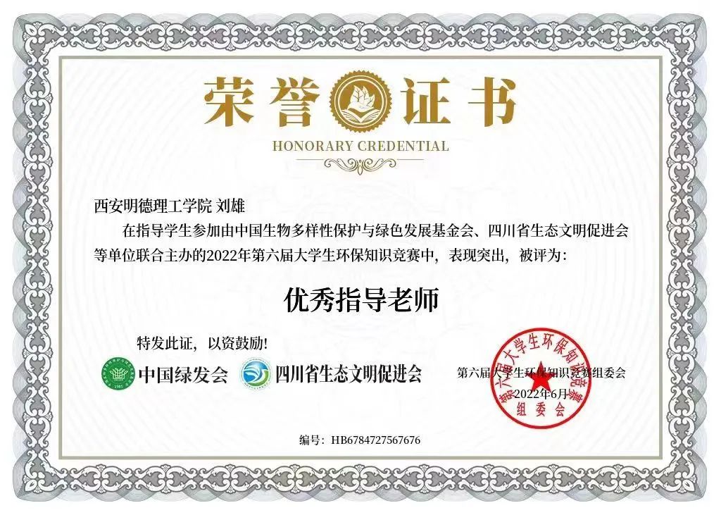 为进一步落实《中共中央国务院关于全面加强生态环境保护坚决打好污染防治攻坚战的意见》中“加强生态文明宣传教育”“培育普及生态文化”等要求,2022年,ac米兰青年志愿者服务团承办了由中国生物多样性保护与绿色发展基金会、四川省生态文明促进会主办的“第六届大学生环保知识竞赛”,学校673位同学积极参赛,取得了良好的成绩:青年志愿者服务团被评为“优秀承办单位”,校团委刘雄荣获“优秀指导教师”称号,裴智豪等3人荣获“优秀组织者”称号,雷宵等7人荣获“优秀志愿者”称号。