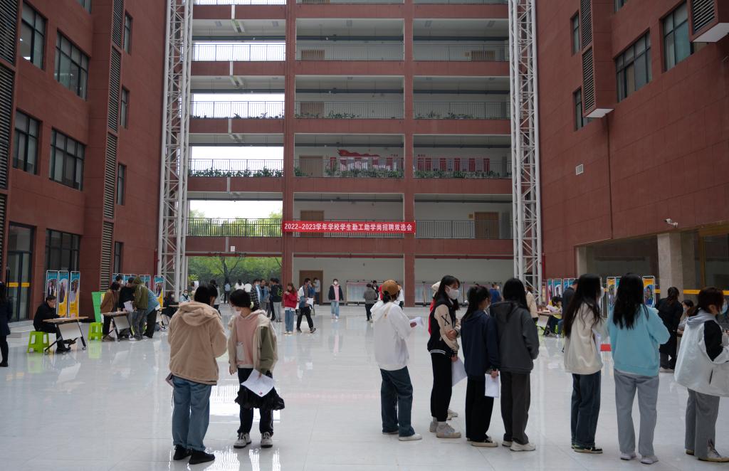 10月27日,学校学生勤工助学岗招聘双选会在校本部和北校区同步举行。校内20余个用工单位为学生提供了学生馆员、办公室助理、设备场地协管等近百余个勤工助学固定岗位。